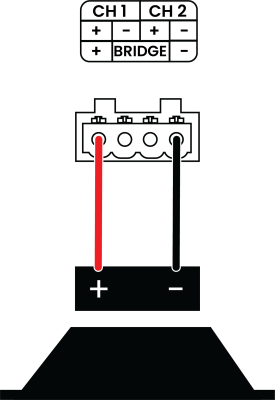 Use the positive connection from the right channel and the negative connection from the left channel to bridge the speaker output for each zone. This creates a single speaker (mono) output.