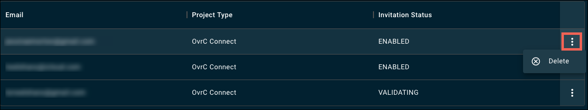 Click the overflow icon in the user table to delete a user.
