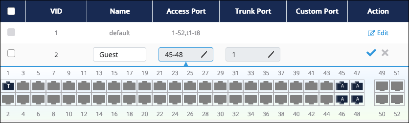 For Access Ports, select ports that should only be in contact with clients on the selected VLAN.