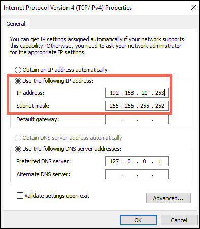 If the switch is not given an IP address on the network or needs to be accessed while not connected to a network, you can configure your computer’s network connection to access the switch using the default IP address, 192.168.20.254, while connected to the MGMT port.