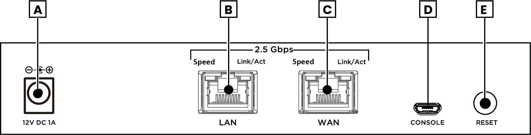 LAN port — Connect a client device such as a network switch, computer, etc.
