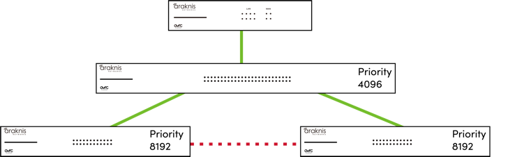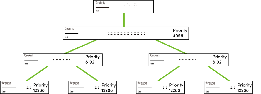 The default Bridge Priority for Araknis and Pakedge switches is 32768. This can be adjusted in increments of 4096. To ensure your core switch is selected as the root bridge, set its Bridge Priority to 4096.
