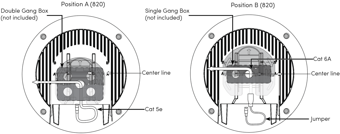 Note: Use the jumper cable when using Cat 6A in Position B.