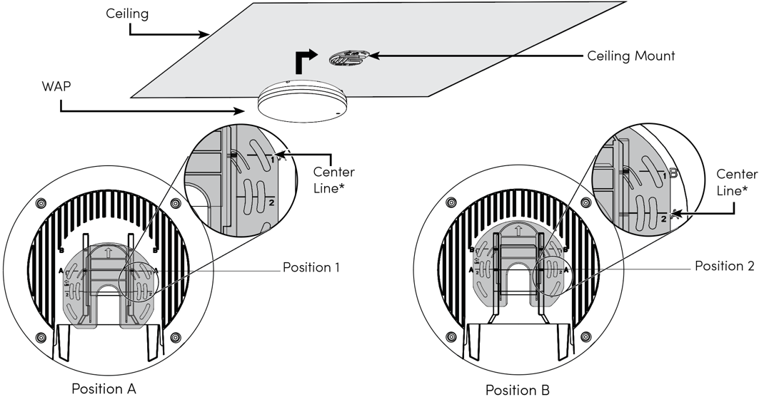 * The center line of the bracket is not necessarily the center line of the AP when it's being installed. Use the above guide to understand the center line of the AP when installing the bracket.