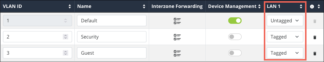 Set each LAN port as Tagged, Untagged, or Excluded.