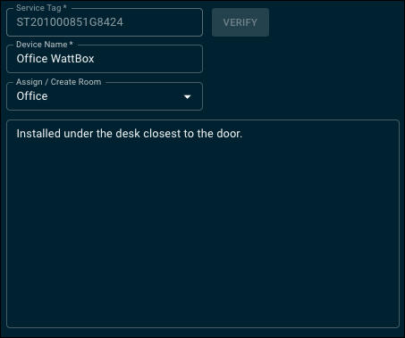 Enter a name for the device, assign it to a room, and add any helpful notes. Click Add Device to complete the process.