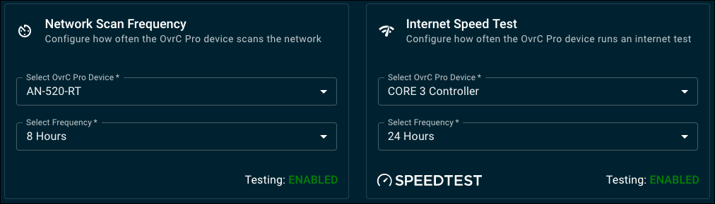 OvrC Pro can run speed tests and network scans to keep your system healthy. With OvrC Pro running on various devices, it’s likely you'll have multiple devices capable of running these OvrC Pro services.
