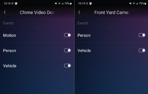 3. Tap on the toggle to enable push notifications for person, vehicle, package, or motion detection.