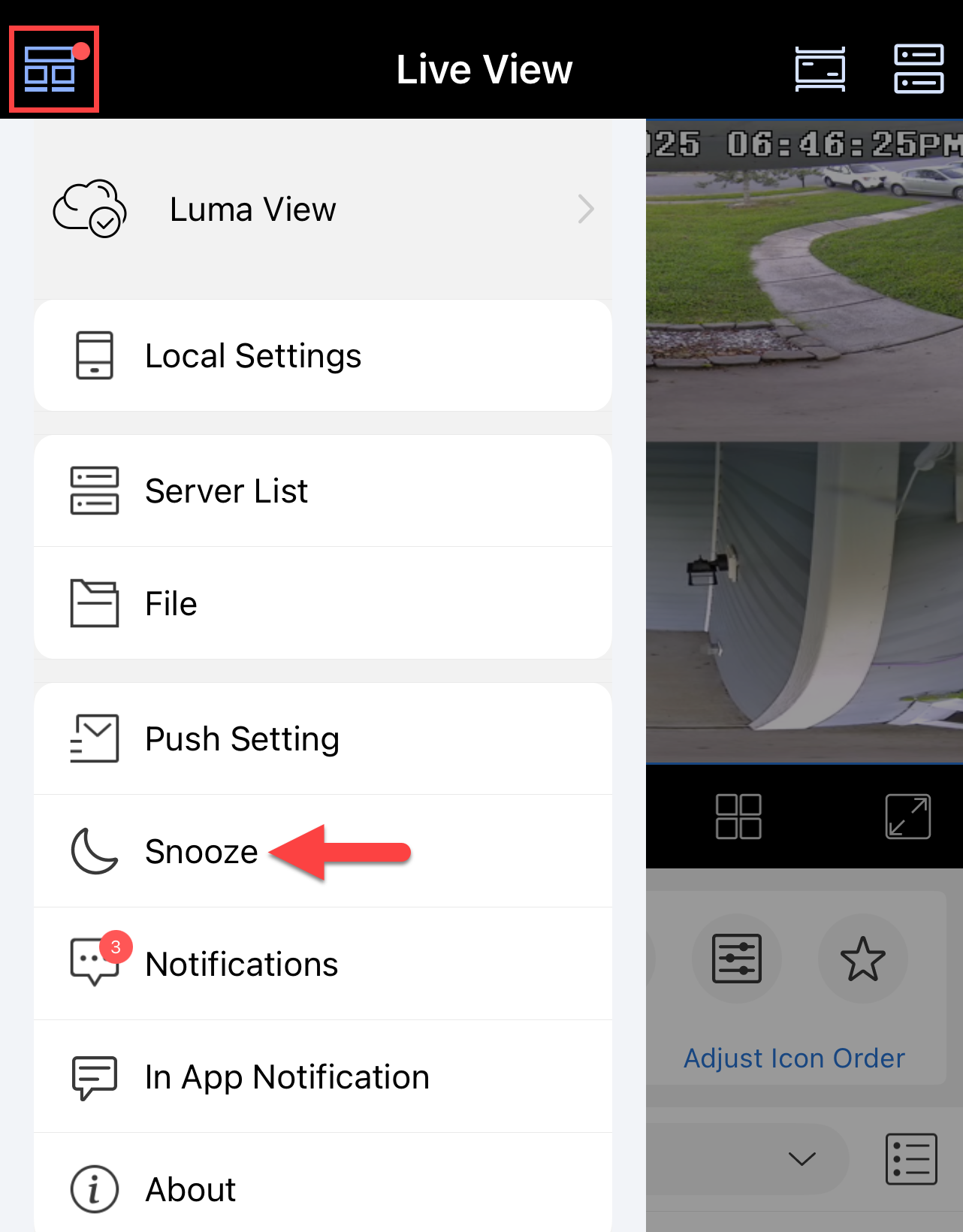 Receive new notification – Globally turn off notifications from your Luma View app.