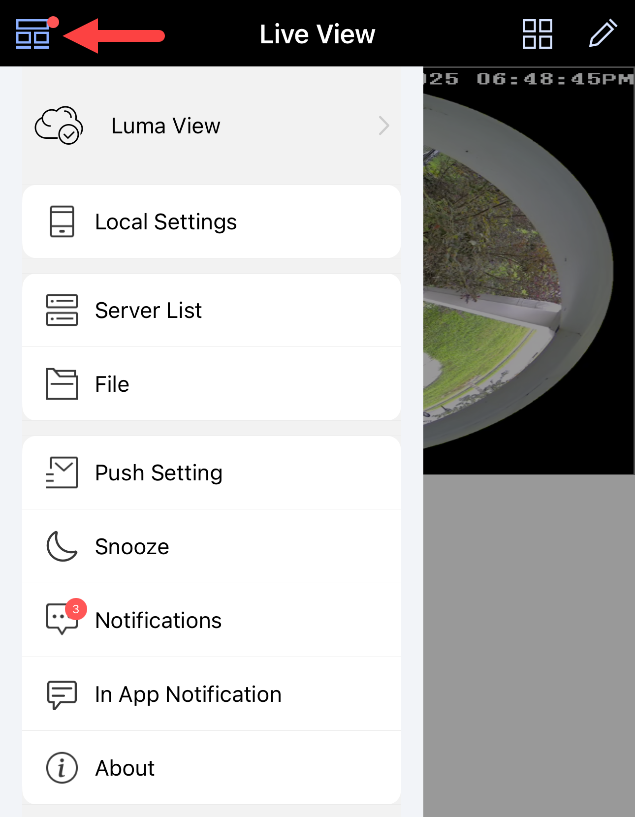 Notifications – Shows the last 99 push notifications that your Luma View app has received.