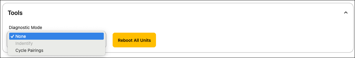 If you’re unsure which receiver is connected to which output, use the Tools section at the top of the page and set the Diagnostic Mode to Identify Mode to display the MoIP device’s MAC address on the display.
