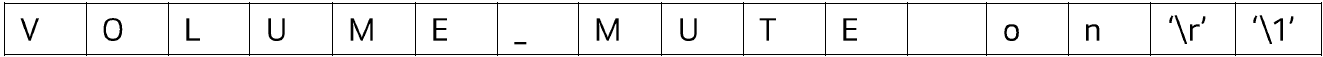 Clear text message must be terminated with '\r' (0x0d). Use VOLUME_MUTE on command as example.